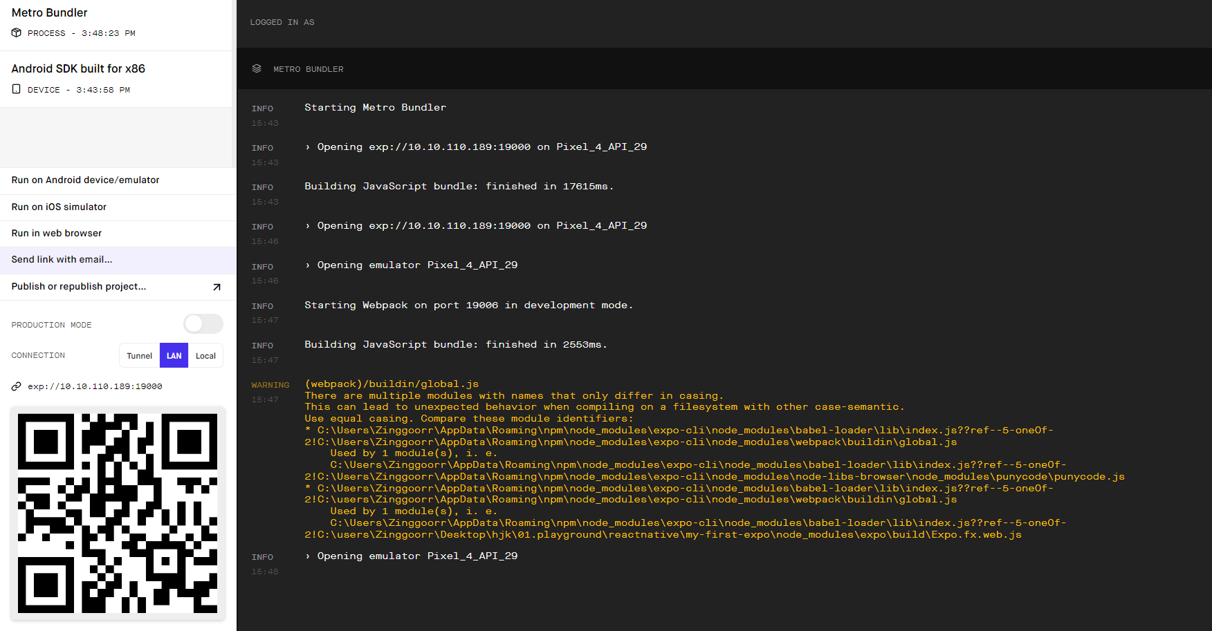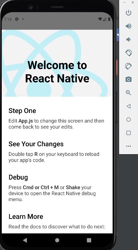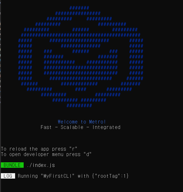 - npx react-native run-ios 또는 npx react-native run-android 명령어로도 실행 가능 - Metro : 리액트 네이티브를 위한 자바스크립트 번들러(실행 시 터미널 또는 명령 프롬프트가 열림