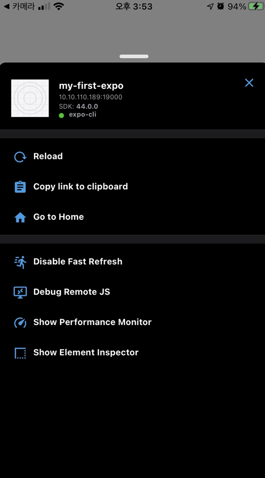 - 프로젝트 실행 : cd my-first-expo (해당 경로로 가서) / npm start (실행)